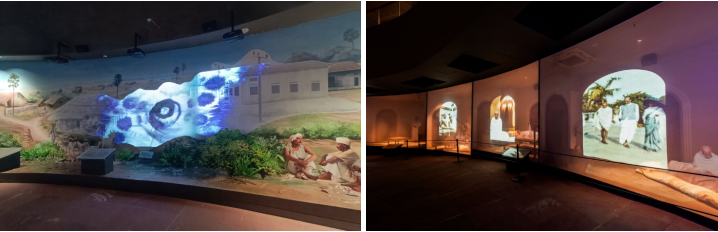 Captiva DWU500S投影機(jī)承擔(dān)展墻投影任務(wù)(左圖),DWU630-GS投影機(jī)在另一展廳實(shí)現(xiàn)透明屏幕投影,與真人比例雕塑協(xié)同呈現(xiàn)完整的藝術(shù)場景(右圖)