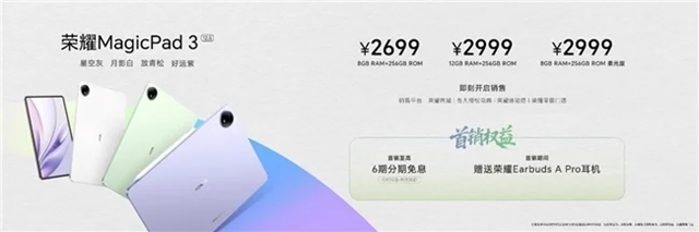 榮耀MagicPad3 Pro擁有浮光金、月影白和星空灰等三款配色,將于10月23日開(kāi)啟全渠道首銷,首銷優(yōu)惠價(jià)3799元起。