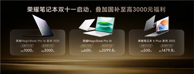 榮耀還公布了一系列持續(xù)回饋老用戶的福利:購(gòu)買榮耀MagicPad3 Pro最高配置可享300元升杯券;即刻起,將在多款平板機(jī)型中陸續(xù)升級(jí)MagicOS 10與PC級(jí)WPS功能。另外,2021年4月后發(fā)布的榮耀PC全系也將獲得YOYO助理升級(jí)推送,雙11期間購(gòu)買榮耀筆記本,更有疊加國(guó)補(bǔ)最高省3000元的優(yōu)惠福利。