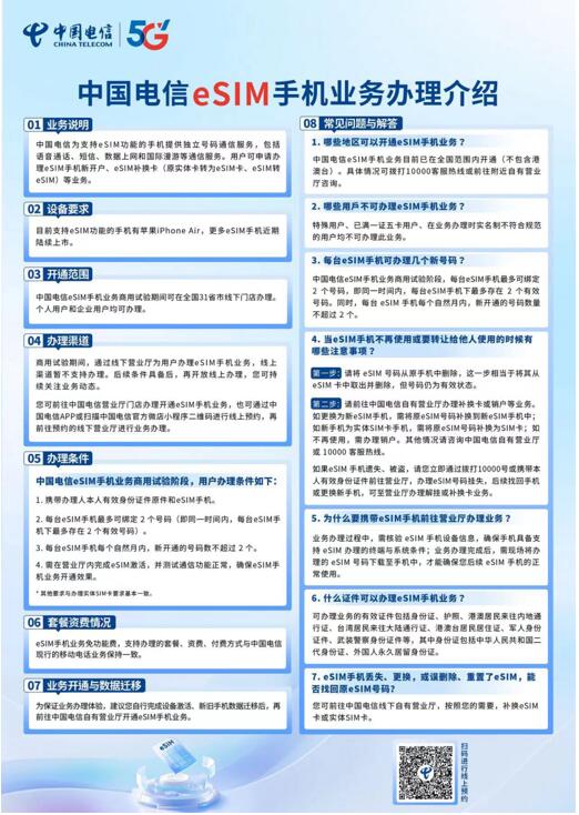 在此之前,中國電信eSIM業(yè)務已支持智能手表、車載設備等多類終端,此次手機端eSIM業(yè)務的引入,將全面推動移動通信服務從傳統(tǒng)的實體SIM卡模式向“輕量化、多模態(tài)”的eSIM模式演進,為用戶帶來“免插卡激活、跨設備無縫協(xié)同、全球無縫漫游”的便捷體驗。