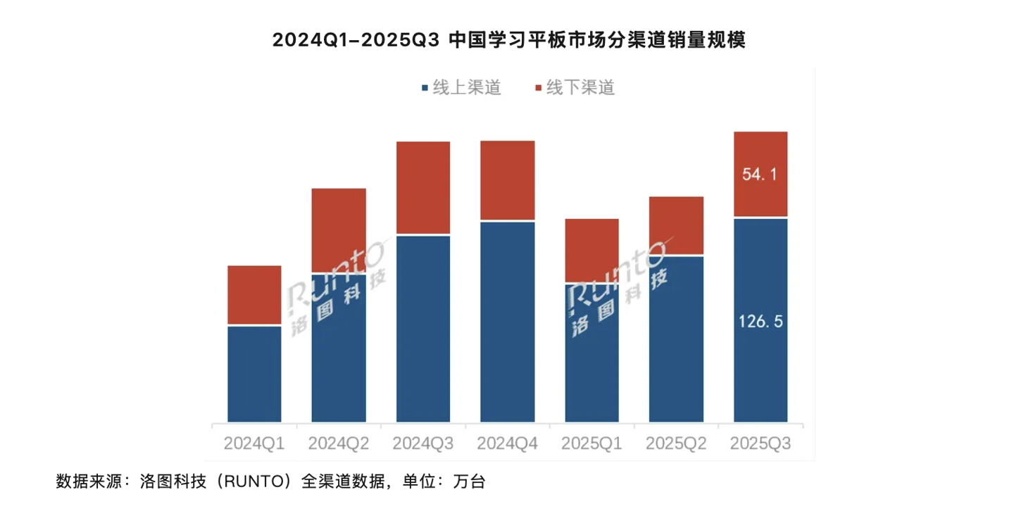 2025 年 Q3 中國大陸學習平板市場全渠道銷量 180.6 萬臺,同比增長 3.5%
