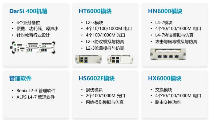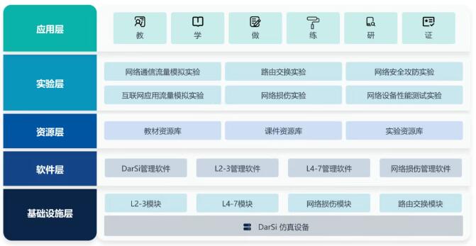 5、基礎(chǔ)設(shè)施層 (Infrastructure Layer)以DarSi 設(shè)備為基礎(chǔ),集成了模塊化的硬件功能,包括 L2-3模塊、L4-7模塊、網(wǎng)絡(luò)損傷模塊和路由交換模塊。這為模擬真實(shí)網(wǎng)絡(luò)環(huán)境的“規(guī)!焙汀皬(fù)雜度”提供了強(qiáng)大的硬件保障。