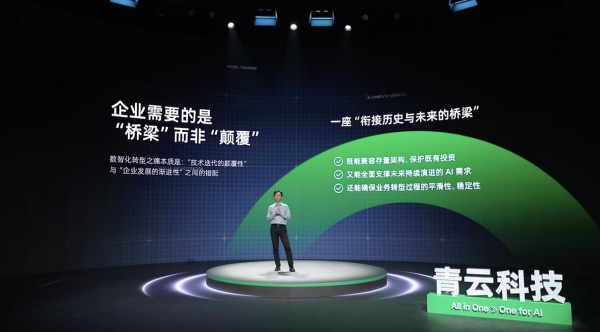 面對企業(yè)客戶的現實需求,青云給出的轉型答案是架設一座銜接歷史與未來的橋梁。它能夠兼容存量架構,保護既有投資,又能全面支持未來持續(xù)演進的AI需求,還能確保業(yè)務轉型中的平滑性和穩(wěn)定性。