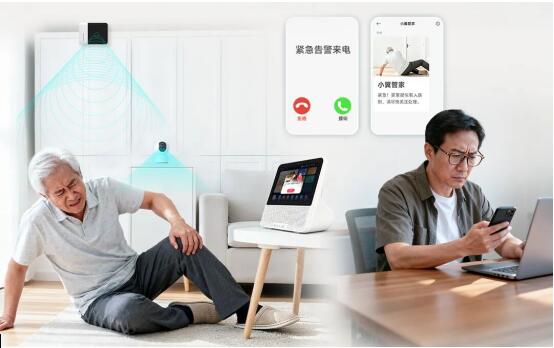針對獨居、高齡老人可能面臨的突發(fā)疾病、意外跌倒等風險,天翼智屏聚焦老年群體核心安全需求,聯(lián)動毫米波雷達設備,提供全天候安全守護。