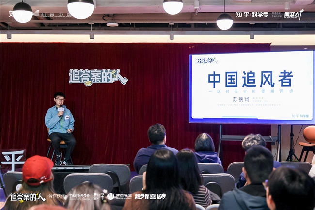 “別人遇刮風(fēng)下雨往室內(nèi)躲,我們偏要往風(fēng)暴里闖”,有著七年追風(fēng)經(jīng)歷的蘇鏑坷以《中國追風(fēng)者》為題,分享了中國追風(fēng)群體的神秘面紗,他也在現(xiàn)場呼吁,希望大家多抬頭記錄天空變化,“一張照片或許就是科研素材”。