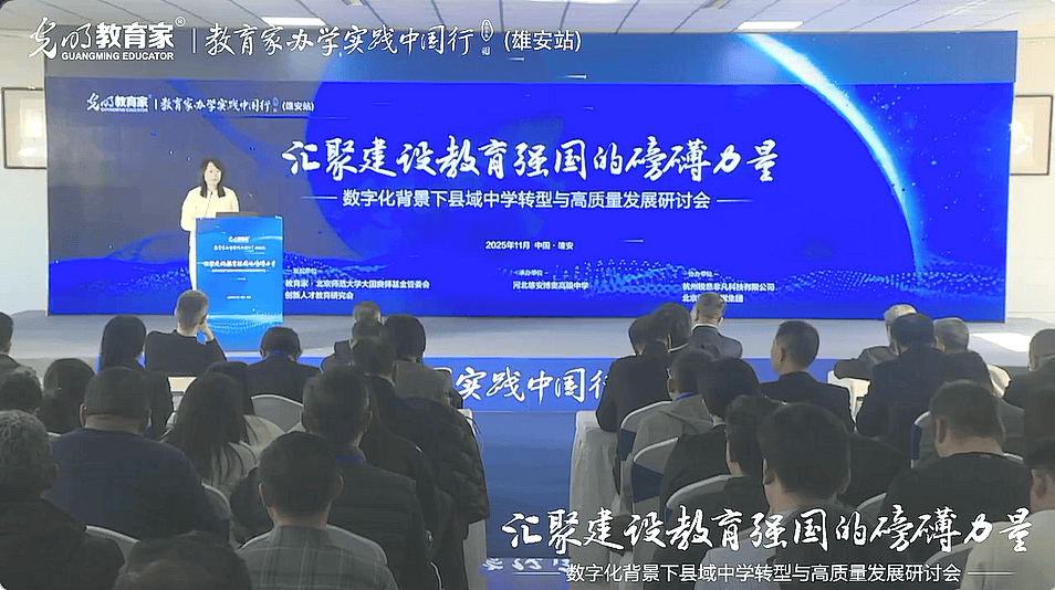 2025年11月22日,由教育主流媒體《教育家》雜志主辦的"教育家辦學(xué)實踐中國行"雄安站活動圓滿啟幕。來自全國教育領(lǐng)域的200余位專家學(xué)者、一線教育工作者及企業(yè)代表齊聚一堂,以“數(shù)字化背景下縣域中學(xué)轉(zhuǎn)型與高質(zhì)量發(fā)展”為題,圍繞縣中振興的戰(zhàn)略路徑、數(shù)字賦能機制與育人模式創(chuàng)新展開深度交流。