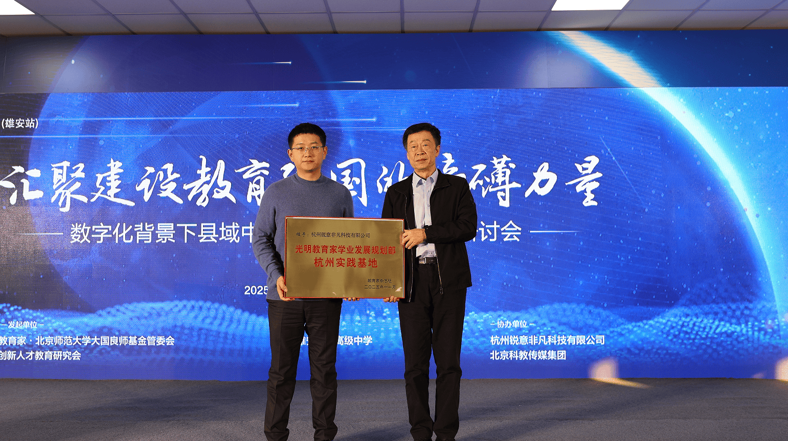 活動現(xiàn)場,《教育家》雜志社副社長李功毅為銳意升學(xué)CEO劉王銳授牌,正式設(shè)立“光明教育家學(xué)業(yè)發(fā)展規(guī)劃部杭州實踐基地”。該實驗基地將依托銳意升學(xué)在升學(xué)規(guī)劃領(lǐng)域的專業(yè)優(yōu)勢,聚焦縣域中學(xué)教育發(fā)展需求,開展學(xué)業(yè)發(fā)展規(guī)劃研究與實踐探索,助力縣中教育質(zhì)量提升與創(chuàng)新發(fā)展。此次授牌不僅是對銳意升學(xué)教育理念與實踐成果的權(quán)威認可,更是雙方深化合作的重要里程碑。