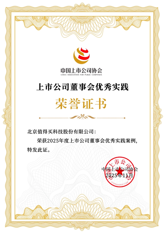 充分發(fā)揮戰(zhàn)略引領(lǐng)作用,值得買科技入選“2025上市公司董事會優(yōu)秀實踐案例”