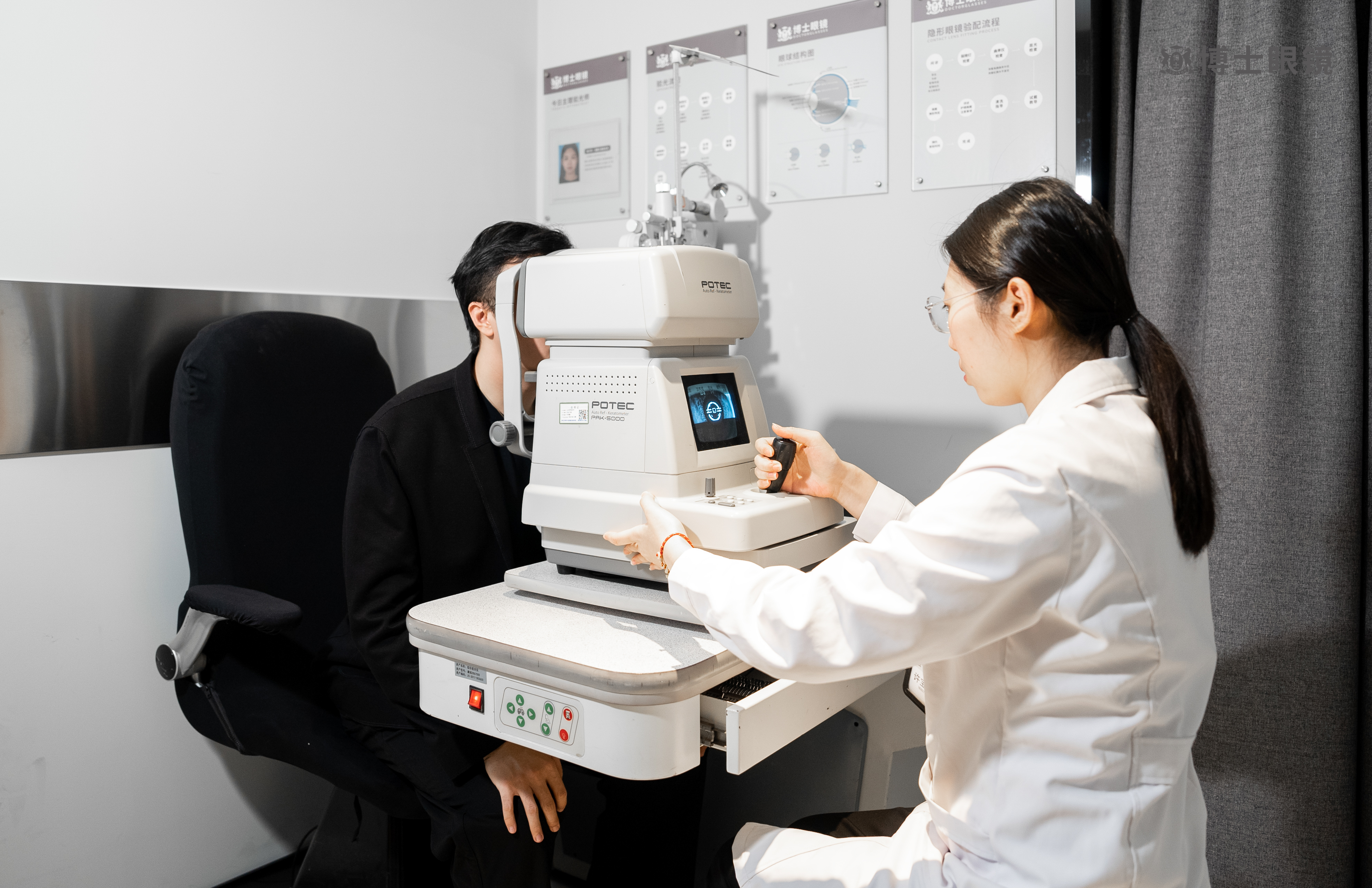 (圖:博士眼鏡驗(yàn)光師為顧客驗(yàn)光)