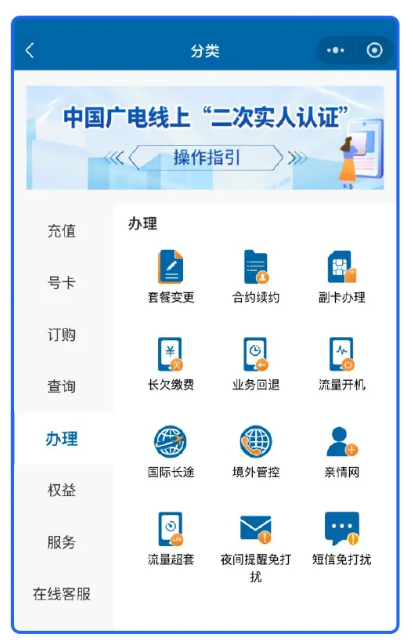 中國廣電營業(yè)廳小程序:在小程序“辦理”欄目中,點(diǎn)擊“短信免打擾”。