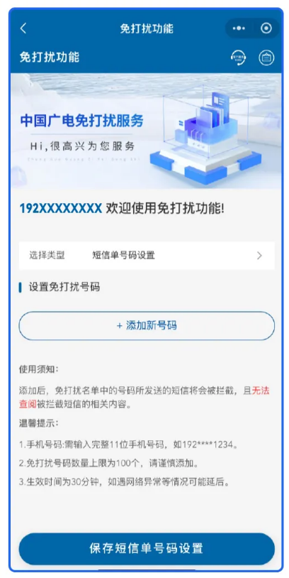 中國廣電 192 號(hào)段短信免打擾功能上線