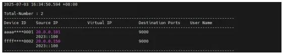 可信用戶信息:包含用戶源IP地址、設(shè)備ID和允許該用戶訪問的端口,用于SDP網(wǎng)關(guān)結(jié)合源IP或設(shè)備ID來判斷用戶是否為可信用戶、根據(jù)訪問端口判斷是否在訪問合法端口。