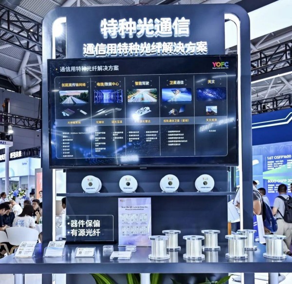 第26屆中國國際光電博覽會的長飛展臺上,同樣展示了多元化的全場景應(yīng)用成果,包括AI智算樞紐、特種光通信、智能感知、工業(yè)激光、全光智能車、綠色照明等六大主題產(chǎn)品與解決方案。例如,整合空芯、多芯等前沿光纖,高品質(zhì)多模光纖,高密度綜合布線系統(tǒng),400G/800G/1.6T高速光模塊等創(chuàng)新產(chǎn)品的長飛AI智算樞紐解決方案;全功率、全波段、全脈寬的特種光纖解決方案所展現(xiàn)的長飛公司在工業(yè)激光特種光纖全球領(lǐng)先的技術(shù)實(shí)力;深度融合車載光纖通信、車載光纖照明、車載激光雷達(dá)鉺鐿共摻光纖、車載電池光纖監(jiān)測、碳化硅五大技術(shù),打造的“全光智能車”解決方案;從核心材料、關(guān)鍵器件到激光光源的自主創(chuàng)新全產(chǎn)業(yè)鏈產(chǎn)品,以及全新旋芯架構(gòu)激光解決方案。從多個(gè)領(lǐng)域與實(shí)際業(yè)務(wù)場景形象地呈現(xiàn)了特種光纖對于現(xiàn)實(shí)世界的賦能。