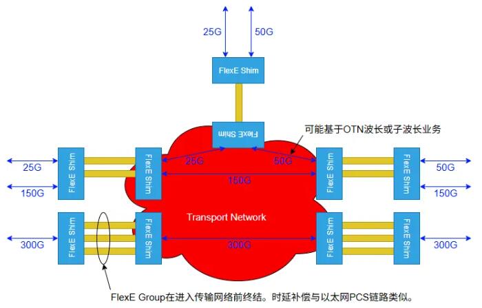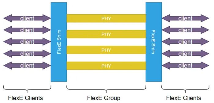 FlexE Shim層的核心功能,由PHY、Group、Shim、Clients幾部分組成。