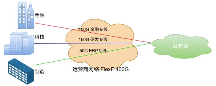 運營商向企業(yè)客戶提供上云專線服務。FlexE 解決方案,使運營商能夠制定帶寬顆粒化銷售策略,為業(yè)務提供媲美物理專線的SLA(服務等級協(xié)議)保障。