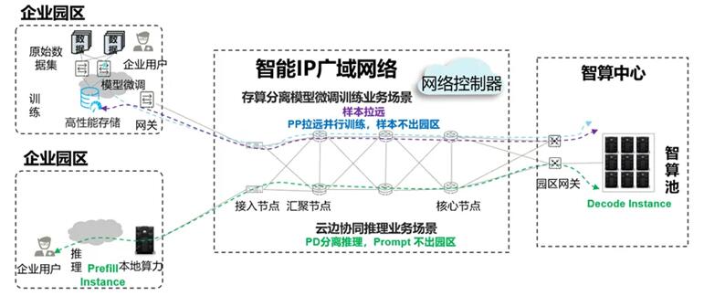 三、基于智能IP廣域網(wǎng)(AI WAN)的存算分離與云邊協(xié)同訓(xùn)推技術(shù)方案