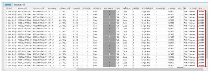 CGN單板新建session速率測(cè)試的前提是確保觸發(fā)新建session表的上行流量不丟包,一旦丟包就說明發(fā)流的速率超過了CGN單板新建session速率,在上述前提下我們想要測(cè)到CGN單板的最大新建session速率就要調(diào)整上行流量的發(fā)包速率剛好不丟包,儀表側(cè)設(shè)置流量的發(fā)送單位為pps,則此時(shí)儀表總的發(fā)包速率即為CGN單板的最大新建session速率。實(shí)測(cè)20條上行流量,每條流發(fā)包速率200kpps時(shí)CGN設(shè)備剛好不丟包,由此計(jì)算出該CGN單板最大新建session速率為20*200kpps=4Mpps。