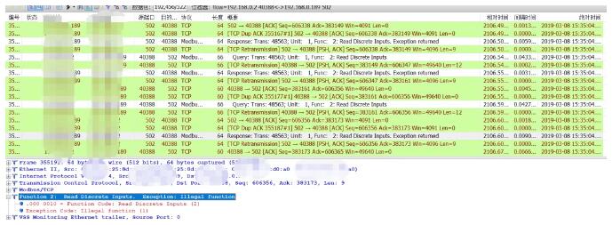 MODBUS交易分析功能幫助某電網診斷連接故障